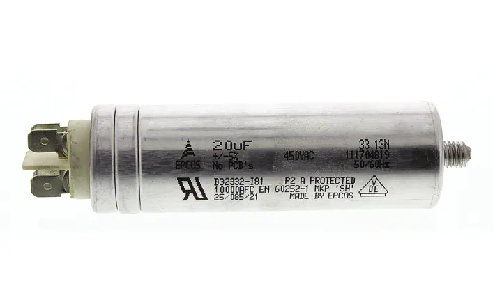 Driftskondensator, 20uF, 450V, bolt og stift, 30×93 mm, TDK/EPCOS B32332I6206J081