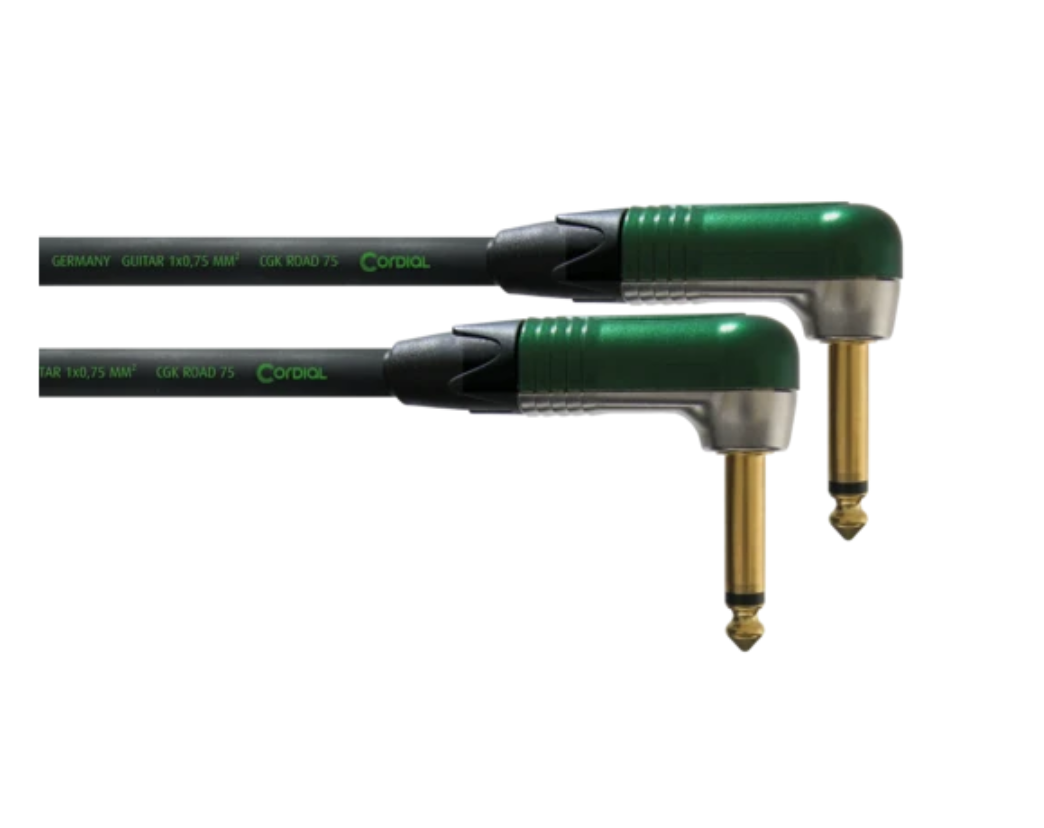 Instrumentkabel med vinklet 6,35mm jack monoplugg i begge ender. Med den korte lengden er denne spesielt egnet for å kjede sammen effektbokser og lignende uten å få masse kabelkluss.