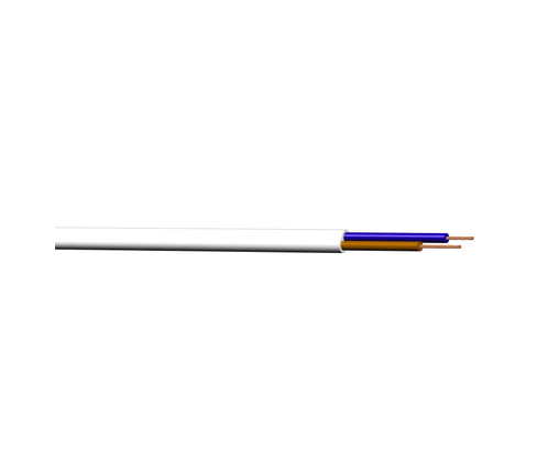 Kabel, PL 2×0,75mm2, hvit, ujordet lampettledning. Passer for lampetter og lamper. flyttbare elektriske apparater etc innomhus. PVC isolert mangetrådet ledning med PVC ytrekappe. Anbefales ikke for langtids utendørs bruk. Konstruksjon og test standard: CENELEC HD 21.5, NEK IEC 60332-1/EN 50265 Konstruksjon: Leder: Mangetrådet, rund, glødet kobber Isolasjon: Blyfri PVC Ytre kappe: Blyfri PVC. Maks. kontinuerlig ledertemperatur: 70 °C Min. bøyeradius: 8 x ytre diameter