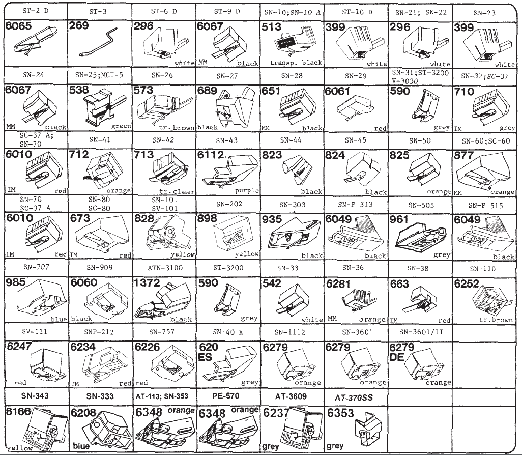 Vi skaffer erstatningsnåler og pickuper for de fleste typer platespillere. Erstatningsnålene er produsert av Tonar, er prisgunstig og holder høy kvalitet. Tonar er originalleverandør av stifter til mange platespillerprodusenter siden 1954 og har en av bransjens lengste erfaring og bredeste sortiment. Nettbutikken vår blir oppdatert med hver enkel erstatningsnål etter hvert. Inntil videre, ta kontakt for pris på nålen eller pickupen du trenger. Vi er også behjelpelig med å finne riktig modell dersom du er usikker på hva som passer akkurat din platespiller.