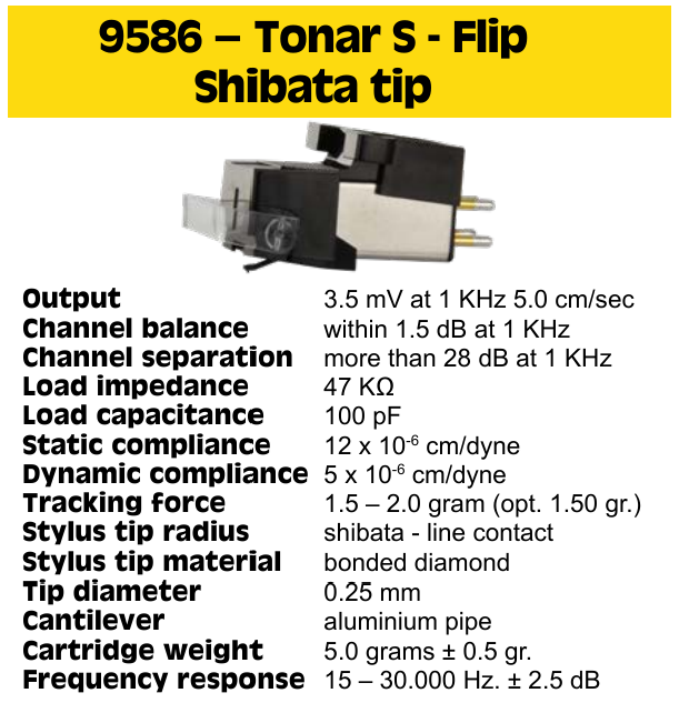 Tonar S-flip er utstyrt med en shibata-slepet nål. Shibatanåler er holdt for å være det ypperste man kan få, og sammenlignet med stifter med konisk eller elliptisk sliping vil den shibata-nålen spore bedre, som betyr at den følger rillene i plata enda bedre. Resultatet er bedre lydgjengivelse, særlig i høyere frekvensområder og mer klarhet i lyden. I tillegg reduseres slitasjen i rilleveggene. Tonar S-Flip er et suverent alternativ dersom du er glad i god lyd og ønsker å oppgradere platespilleren din og i tillegg ønsker at platene dine skal vare så lenge som mulig uten å forringes. Siden shibataslepne stifter har lengre levetid enn andre stifter vil også prisforskjellen utjevne seg over tid.