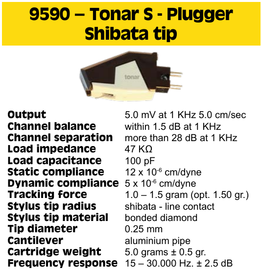 Tonar S-Plugger er utstyrt med en shibata-slepet nål. Shibatanåler er holdt for å være det ypperste man kan få, og sammenlignet med stifter med konisk eller elliptisk sliping vil den shibata-nålen spore bedre, som betyr at den følger rillene i plata enda bedre. Resultatet er bedre lydgjengivelse, særlig i høyere frekvensområder og mer klarhet i lyden. I tillegg reduseres slitasjen i rilleveggene. Tonar S-Plugger er et suverent alternativ dersom du er glad i god lyd og ønsker å oppgradere platespilleren din og i tillegg ønsker at platene dine skal vare så lenge som mulig uten å forringes. Siden shibataslepne stifter har lengre levetid enn andre stifter vil også prisforskjellen utjevne seg over tid.