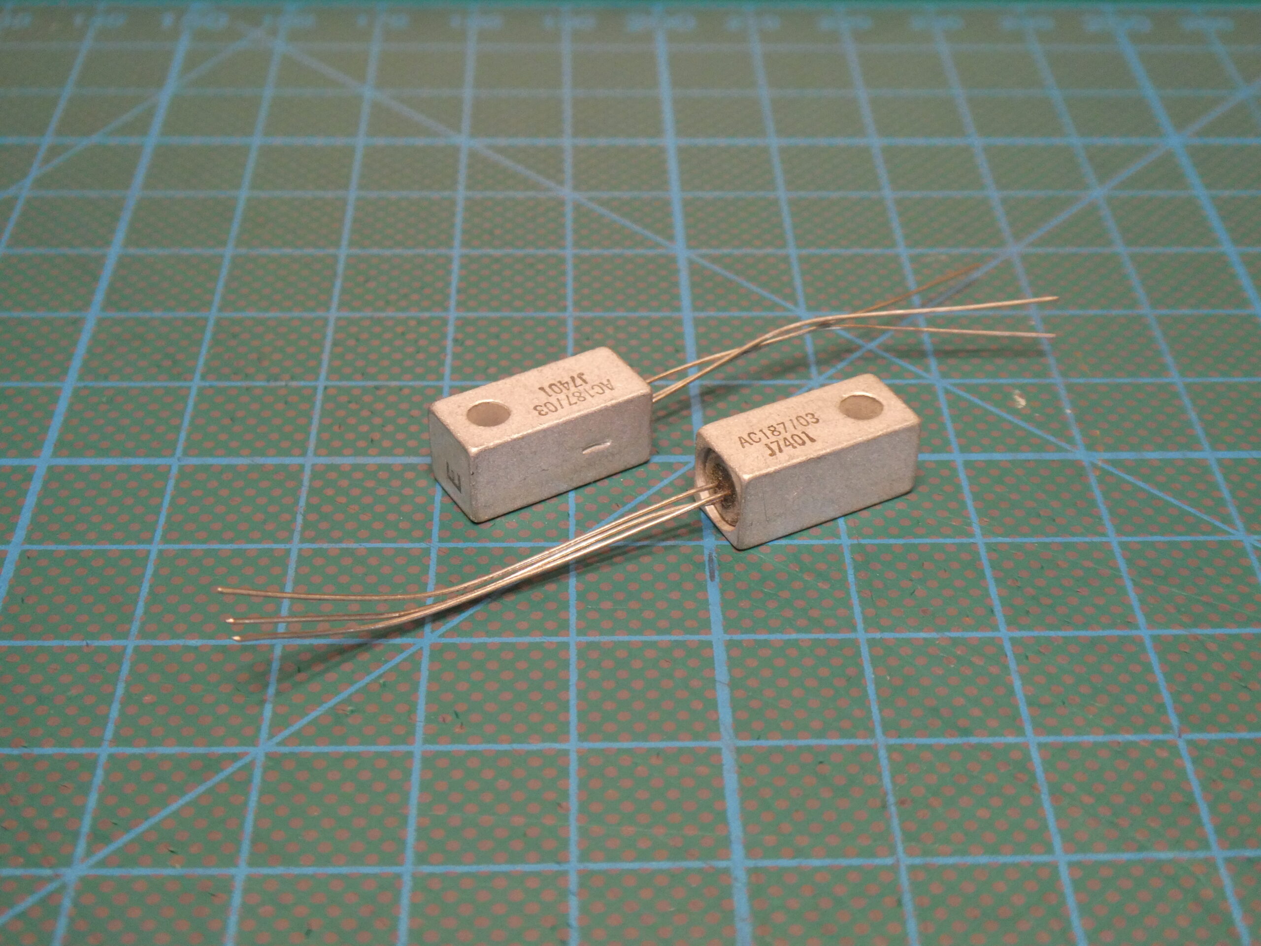 Transistor, AC187/03, NPN, Ge. OBS! Dette er «new old stock» – ubrukte men har ligget mange år på lager.